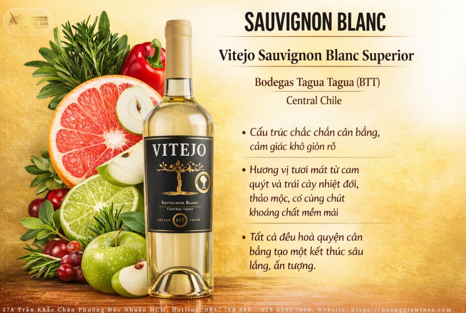 Vitejo Sauvignon Blanc Superior – Vang Trắng Chile Tươi Mát Từ Central Valley | Bodegas Tagua Tagua.