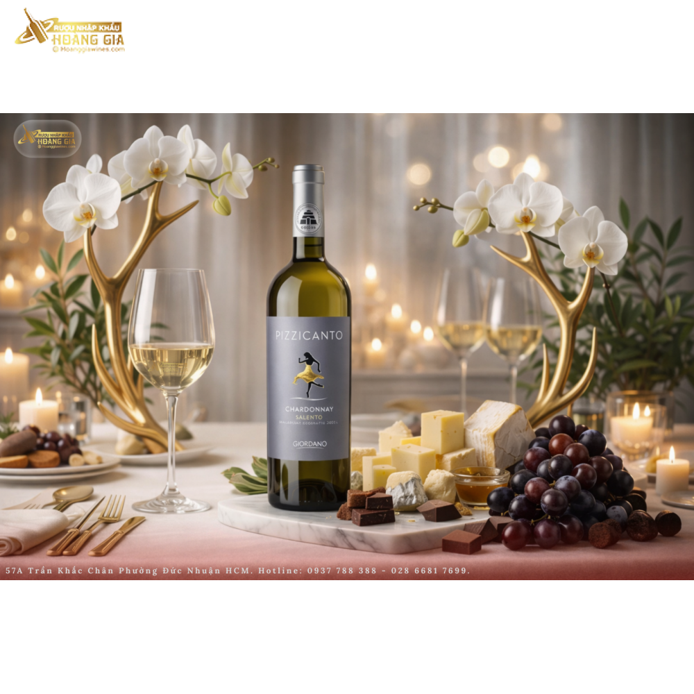 Trong thế giới rượu vang Ý, những chai vang trắng đến từ vùng Salento – miền Nam nước Ý luôn mang một phong cách rất riêng: tươi mát, tinh tế và đầy sức sống. Một trong những chai vang tiêu biểu cho phong cách này chính là Giordano Pizzicanto Chardonnay Salento IGT – dòng vang trắng thanh lịch được sản xuất từ giống nho Chardonnay nổi tiếng.